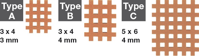Therapeuten manuell bestimmt werden. Durch die Gitterstruktur der "Streifen" werden Hautatmung und der Feuchtigkeitstransport nicht behindert und die Haut